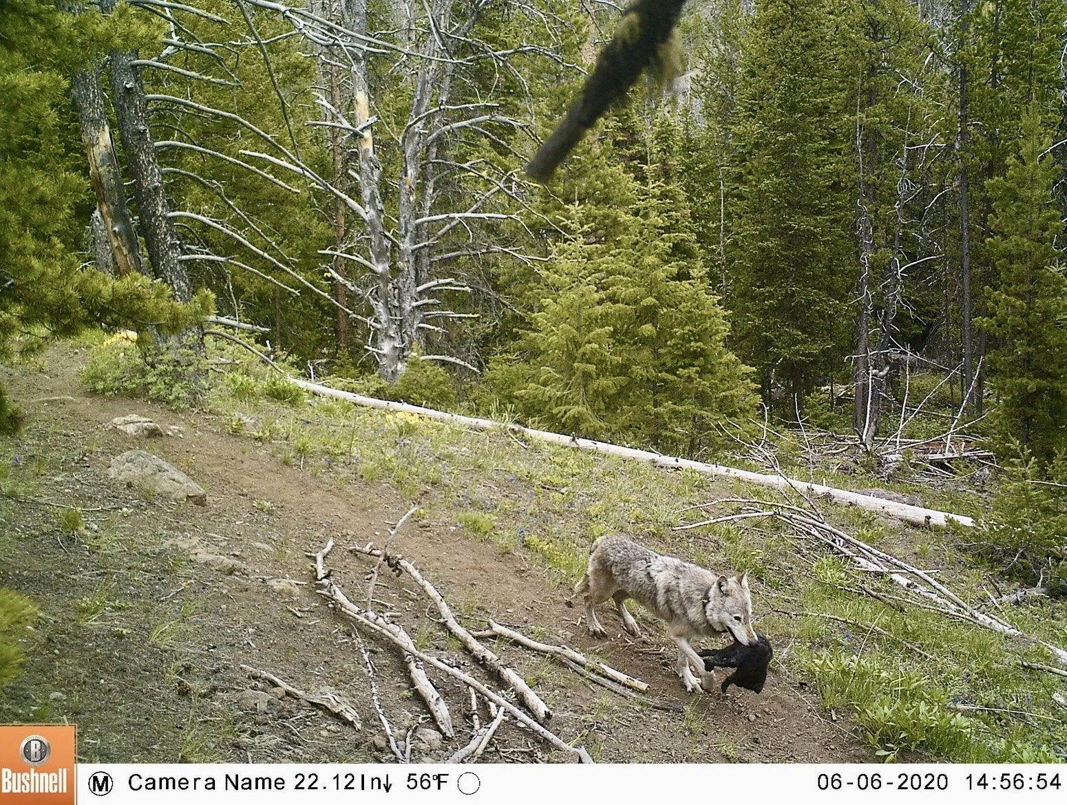 Excited to share the first peer-reviewed paper from my PhD research about wolves using diverse movement tactics to track the partially migratory Cody elk herd in the Greater Yellowstone Ecosystem! We found evidence of wolves shifting homesites with young pups along elk migratory routes to their summer ranges. We even have trail camera footage from Wyoming Game and Fish Department of a 1-2 month old pup being carried from the den to a rendezvous site! Read the press release from UC Berkeley here and access the article online for free here.